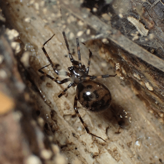 Here’s a female Pimoa altioculata (Ara: Pimoidae) spotted by Ian Cooper in a gash on the side of an alder tree by the Galloping Goose Trail before dawn on April 14 2025.