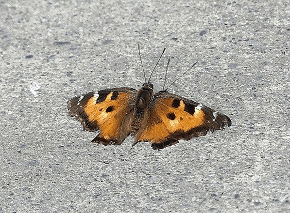 Jeremy Tatum also saw today’s California Tortoiseshell on Mount Tolmie. When he arrived, it was settled on one of the white spots on the reservoir’s surface. After a while, it flew up, and settled again on another of the white spots. I have often thought that these hill-topping nymphalids on the Mount Tolmie reservoir prefer to settle on the white spots.