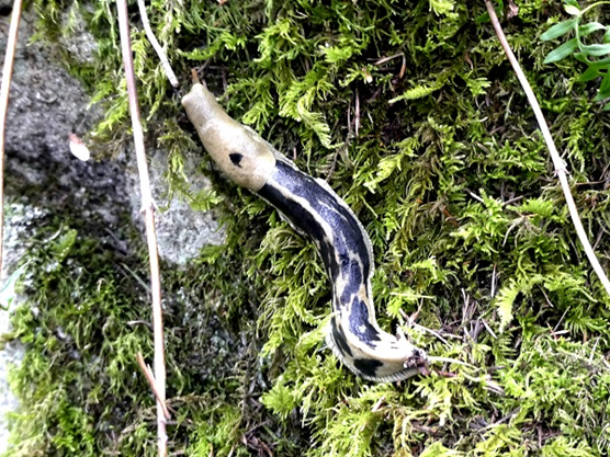 Aziza writes: On April 21 at Bear Hill, a slug was next to the trail. Later, on Mount Douglas west slope,a colourful wasp was on a post. There were Sara Orangetips flying around.