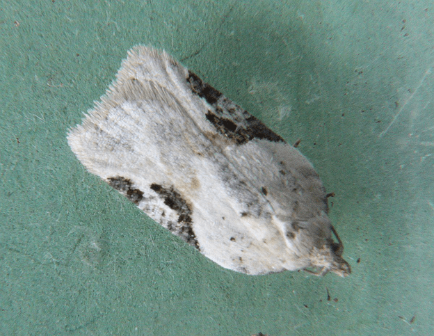 Jeremy Tatum photographed two moths – one large, one small, this morning. The large one was reared from a caterpillar found last year on willow on Carey Road, where the adult moth was released this morning. A few years ago, Cerisy’s Eyed Hawk Moth Smerinthus cerisyi, was split (not sure how justified this was!) into two species – S. cerisyi and S. ophthalmica. The English name Cerisy’s Eyed Hawk Moth will continue to do fine for S. cerisyi, but I have not yet heard an English name for the one we get here, S. ophthalmica. Suggestions, anyone?