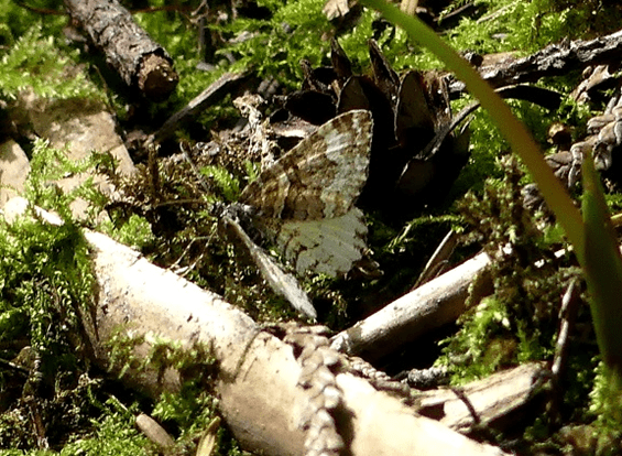 The hindwing of this species is usually bright orange, The white hindwing of this example made it hard initially to identify.