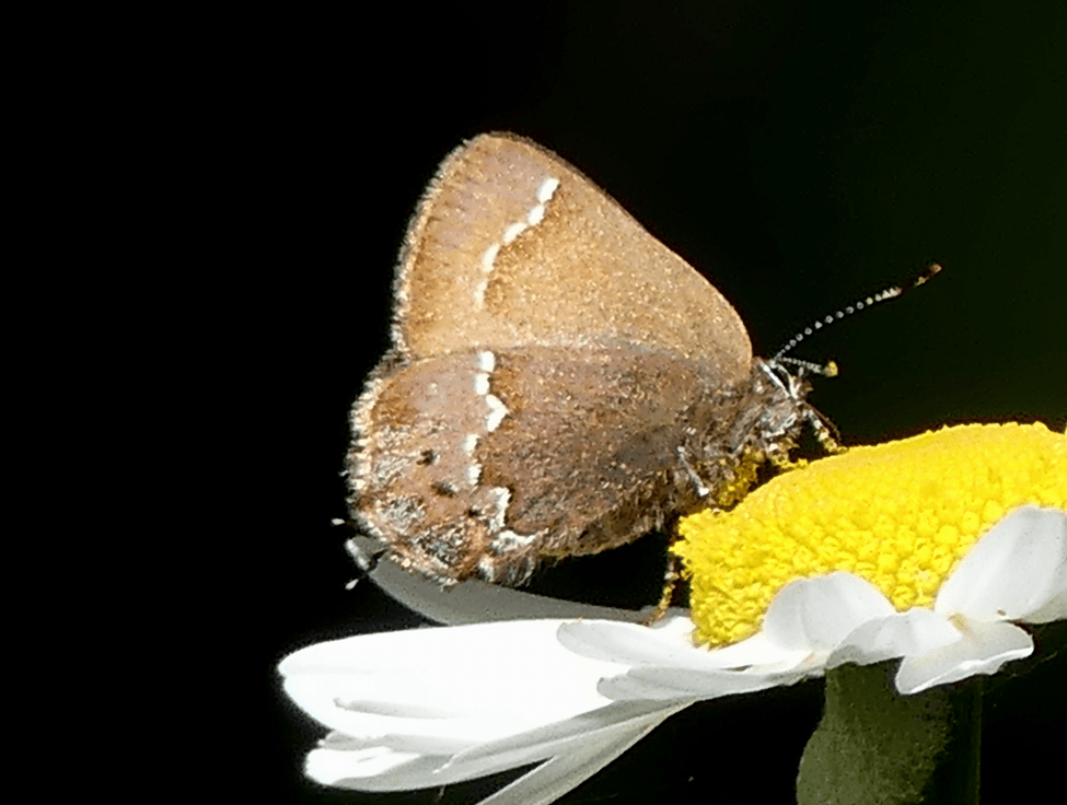 Jeremy Tatum writes: The locality was the same as the place where Aziza last year found and photographed a Johnson’s Hairstreak. This year, Aziza sent the photograph below, and I was not completely sure whether it is a Cedar or a Johnson’s Hairstreak. Thanks to Steve Ansell and David Harris, both of whom took considerable trouble to examine the photographs critcally. They both confirmed that Aziza’s photograph last year (Invert Alert, July 30, 2024, page 30) is indeed a Johnson’s Hairstreak, but this year’s (photograph below) is a Cedar Hairstreak.
