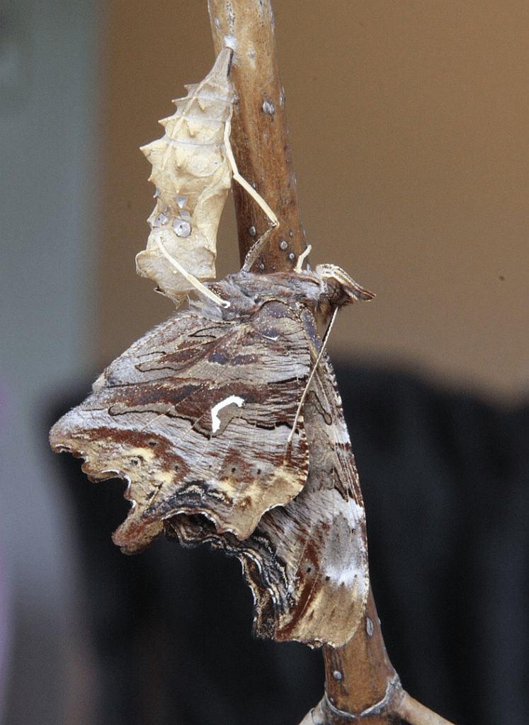 Jeremy Tatum sends a photograph of a Satyr Comma butterfly, which emerged from its chrysalis today and was released in a nettle patch near to the Famous Fence on Lochside Trail, from where the caterpillar came. With luck you may still see it near there tomorrow (June 26) The complicated scribbly pattern on the underside of the wings shows that this is a male. The female has much more uniform less scribbly undersides.