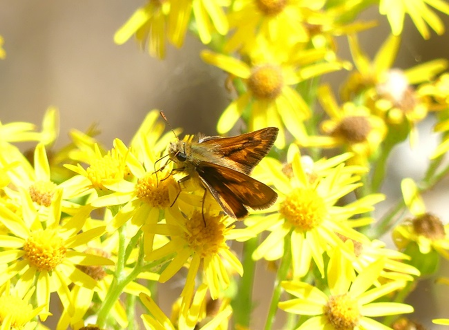 Down here in Victoria, writes JeremyTatum, there seem to be very few butterflies around other than Cabbage Whites, which are still common. However, I saw a Woodland Skipper along Carey Road, and Jeff Gaskin reports a Tiger Swallowtail (species uncertain) along Hector Road.