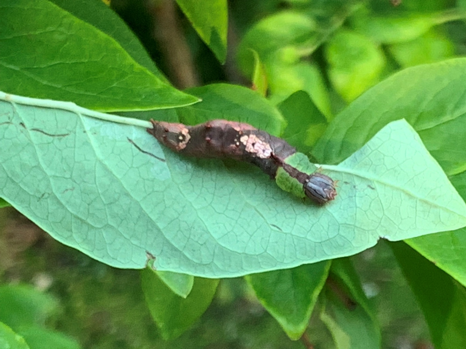 Jeremy Tatum writes: We start this evening’s posting with two rather interesting insects. The caterpillar below was found on Blueberry in Mike and Barb’s Cordova Bay garden. I am not sure at present which of two species of Schizura it is. Viewers will note the sharply demarcated areas of different colours. This is known as disruptive coloration. It makes it difficult to see the shape of the object, so it may not be noticed as a caterpillar. Viewers may have noticed that most of the large moths that are seen on this site belong to one of three large Families: Noctuidae, Erebidae, Geometridae. This belongs to a smaller and perhaps less familiar Family, Notodontidae – a Family that includes some very nice caterpillars.