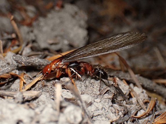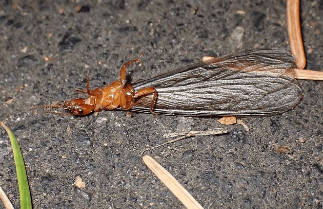 Ian writes: One recurring scene I’ve encountered a couple of times recently are Dampwood Termites who are on the move, alive and still have their wings, but upon closer scrutiny, are missing their abdomens. I felt badly for the poor struggling termites I’ve seen in this condition. I have to assume these doomed critters had fallen prey to very recent attacks by ground beetles or Carpenter ants, as I’ve seen both of those predators dragging along captured Dampwood Termites in recent days.