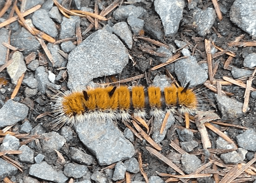 Aziza Cooper writes: On October 7 this caterpillar was on the trail in East Sooke Park. Found by Ren Ferguson. Jeremy Tatum writes: This is the caterpillar of Acronicta insita looking for somewhere to pupate. Moths of the noctuid genus Acronicta are known as dagger moths, because of a dagger-like mark on their wings. This particular species was known, until a recent name-change, as A. dactylina. In fact,it’s not really a name-change. It was originally described and named as insita in 1856. Sometime later, it was presumably rediscovered and given the name dactylina . The rules of nomenclature specify that the original name must have priority (with rare exceptions), so insita is not so much a name-change as a reversion to the original name.