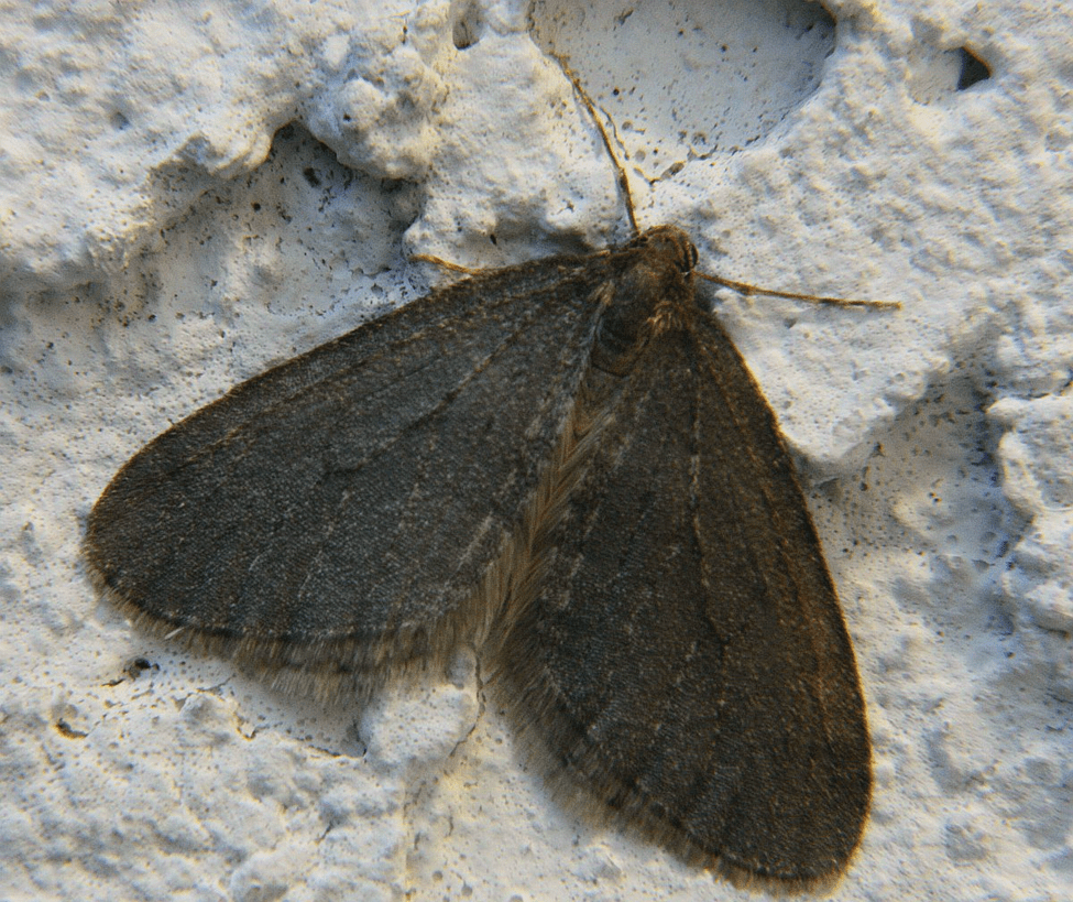 Jeremy Tatum writes: Seven European Winter Moths were outside my back door in Saanich this morning, some well-patterned, some not so much. The only one within easy camera-reach was this one, with scarcely any patterning at all.