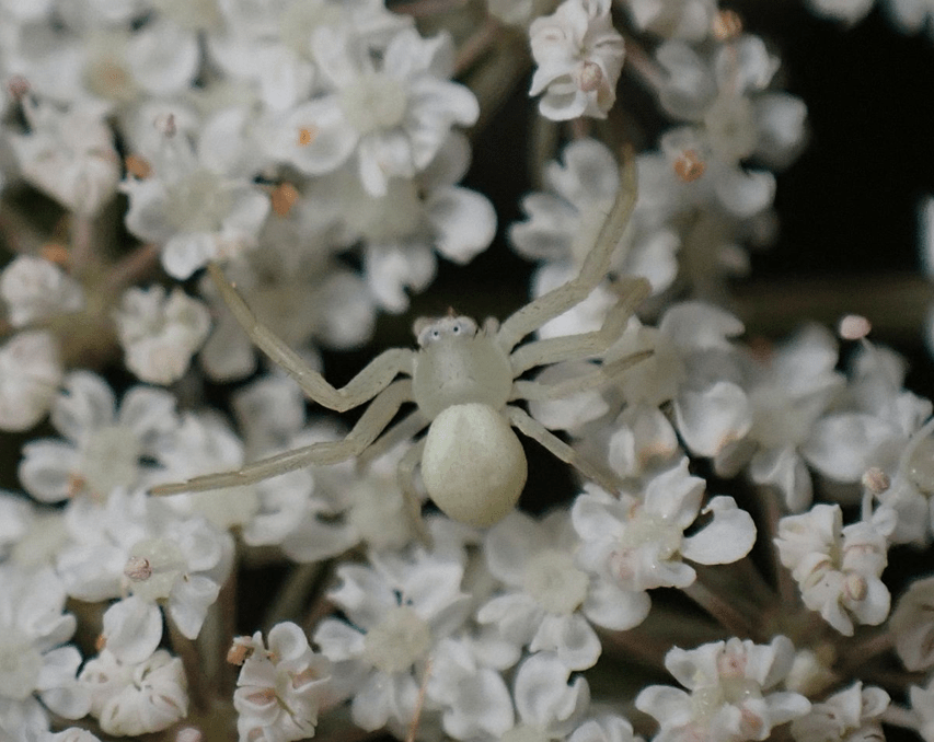 Ian writes: The following two crab spiders were tiny spiderlings. Maximum 3 mm in size, including legs. The first was barely visible on a Queen Anne’s Lace (Wild Carrot) flower that I was scrutinizing. Easily the smallest crab spiders I have ever seen.